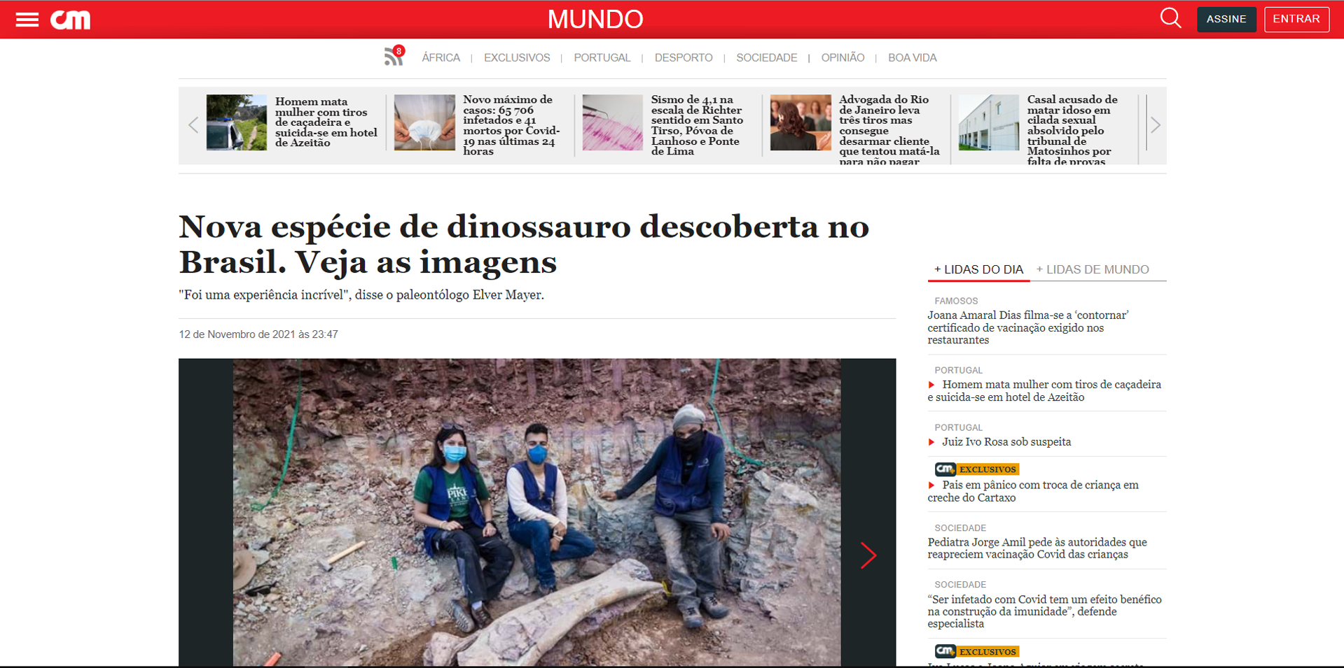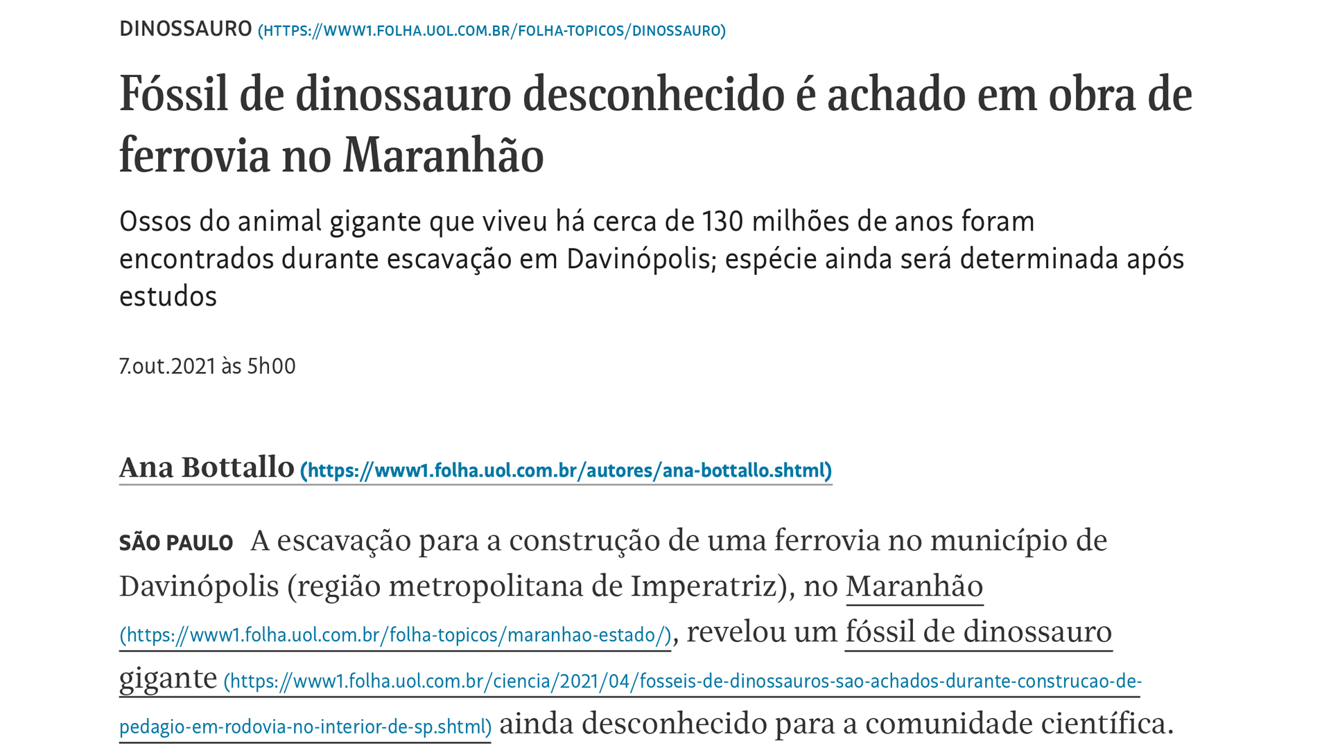 Achado fóssil repercutiu nos principais jornais do Brasil e exterior