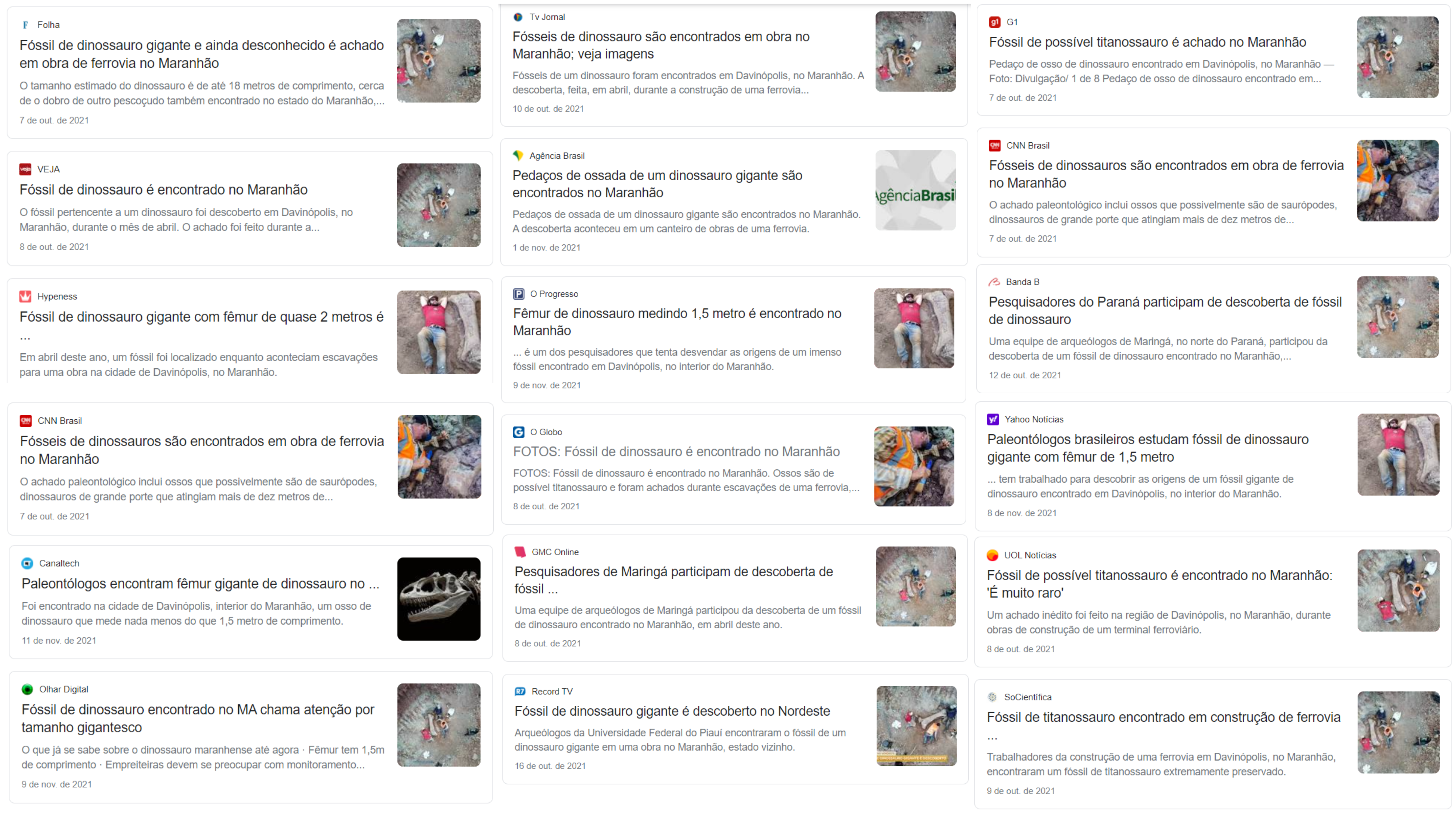 Teve grande repercussão na mídia o achado fóssil encontrado no ano passado na construção da ferrovia no município de Davinópolis (região metropolitana de Imperatriz), no Maranhão. Os ossos gigantes são possivelmente de um titanossauro. Foram encontrados um fêmur de mais de 1,5 metro, pés e mãos, costelas, além de vértebras do animal que podem revelar vestígios sobre a passagem dos saurópodes no Brasil durante o período Cretáceo Inferior.