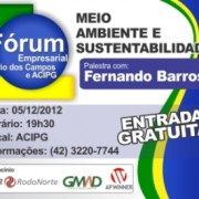 O responsável técnico da Master Ambiental, engenheiro civil Fernando Barros, especialista em Planejamento e Gestão Ambiental e mestre em Engenharia de Edificações e Saneamento, profere palestra sobre sustentabilidade nesta quarta-feira (5), a partir das 19:30 horas, no auditório da Associação Comercial e Industrial de Ponta Grossa (Acipg), Paraná.