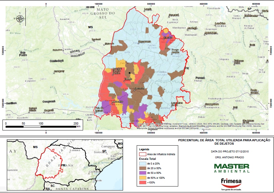 Desse modo, a equipe da Master Ambiental fez o mapeamento de áreas aptas em cada município para aplicação de dejetos de suínos, estimando locais com potencial e outros que já apresentam saturação. Foram utilizados dados do IBGE, IPARDES e EMBRAPA.